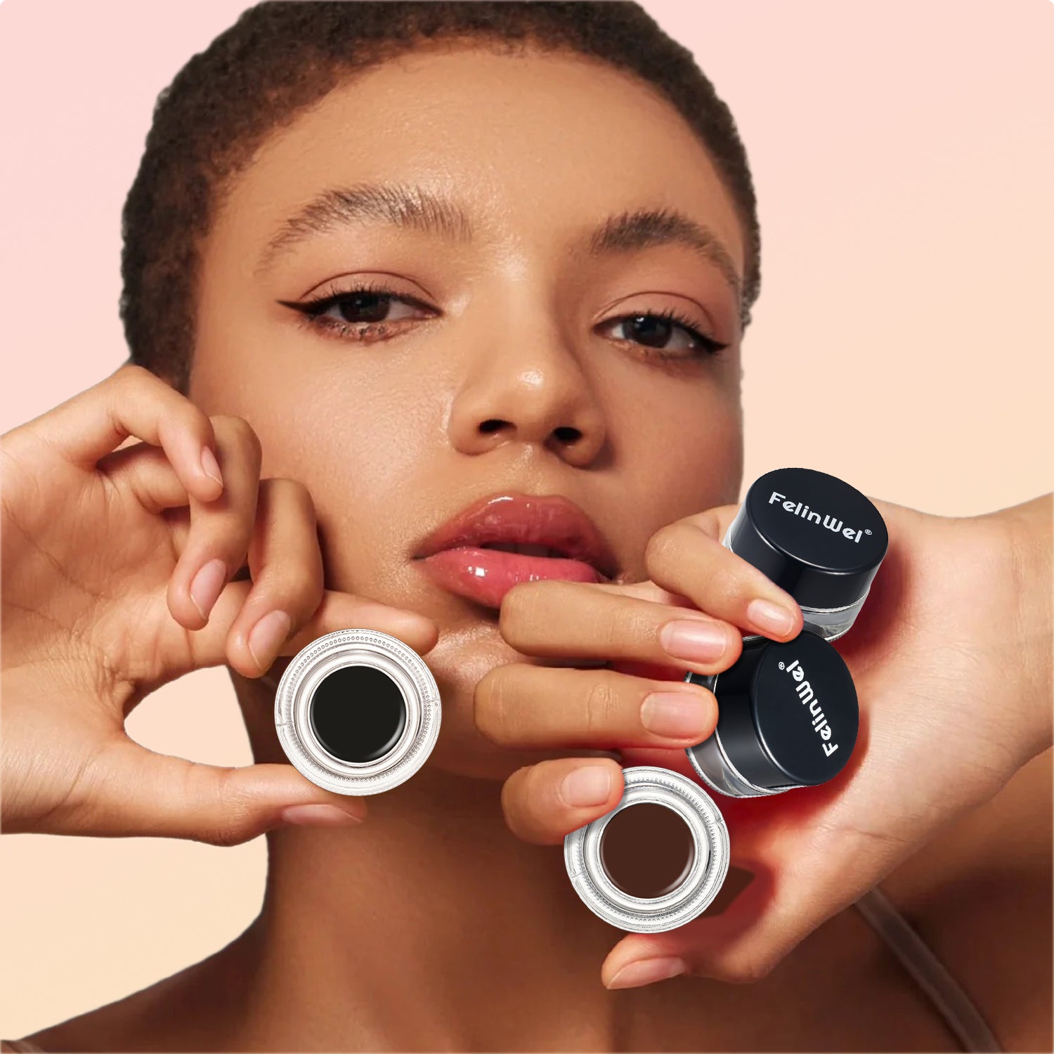FelinWel Juego de delineador de ojos y cejas en gel de 2 colores con 2 pinceles impermeables a prueba de manchas