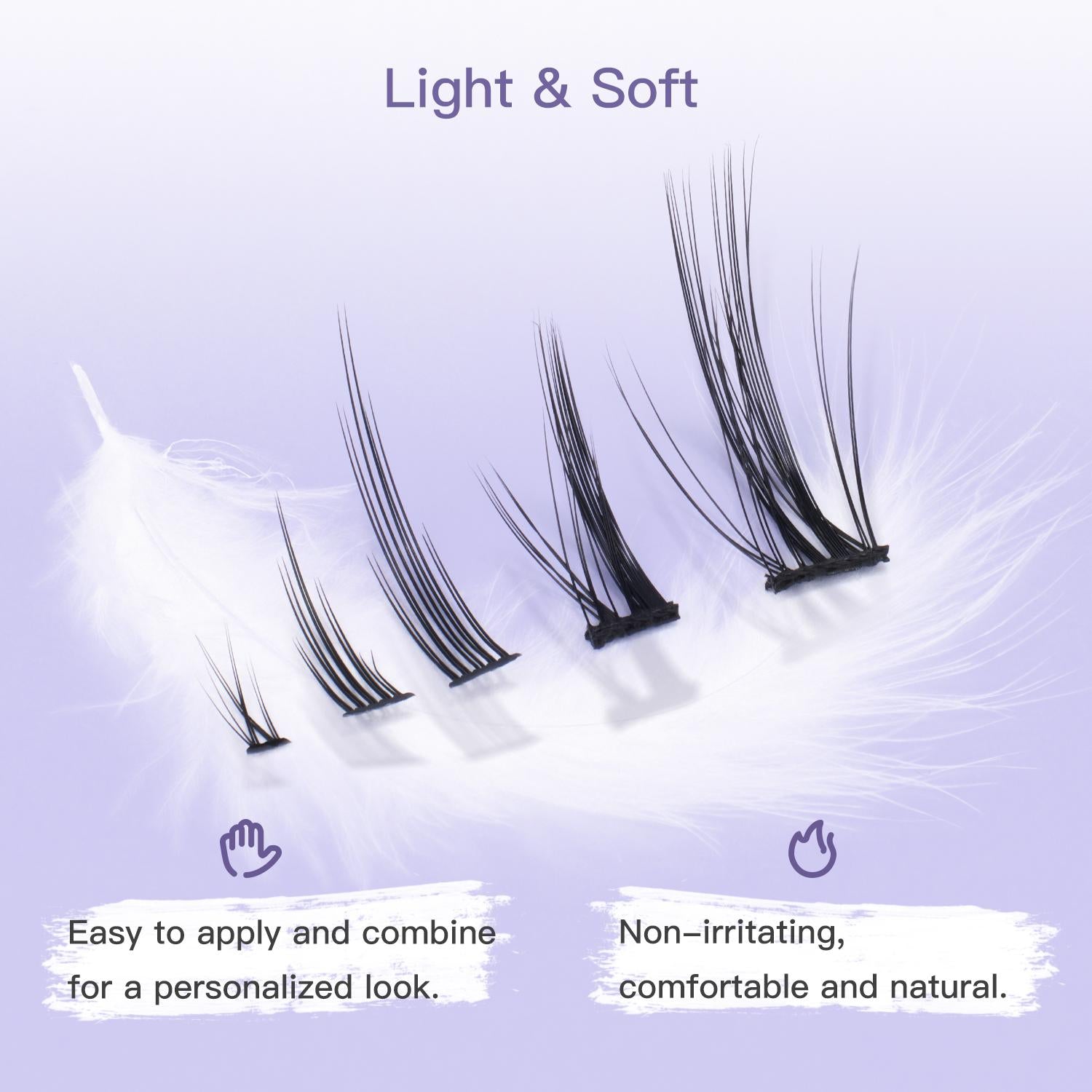- FÁCIL DE APLICAR: a diferencia de las pestañas individuales, nuestras pestañas en grupo son más anchas en la raíz, generalmente de 4 a 6 mm, lo que es más fácil de recortar. Utilice pinzas de pestañas profesionales para pelar las pestañas, aplique pegamento para pestañas postizas y espere 30 segundos, luego aplique las pestañas hacia las pestañas naturales superiores o inferiores. No te toques los párpados.